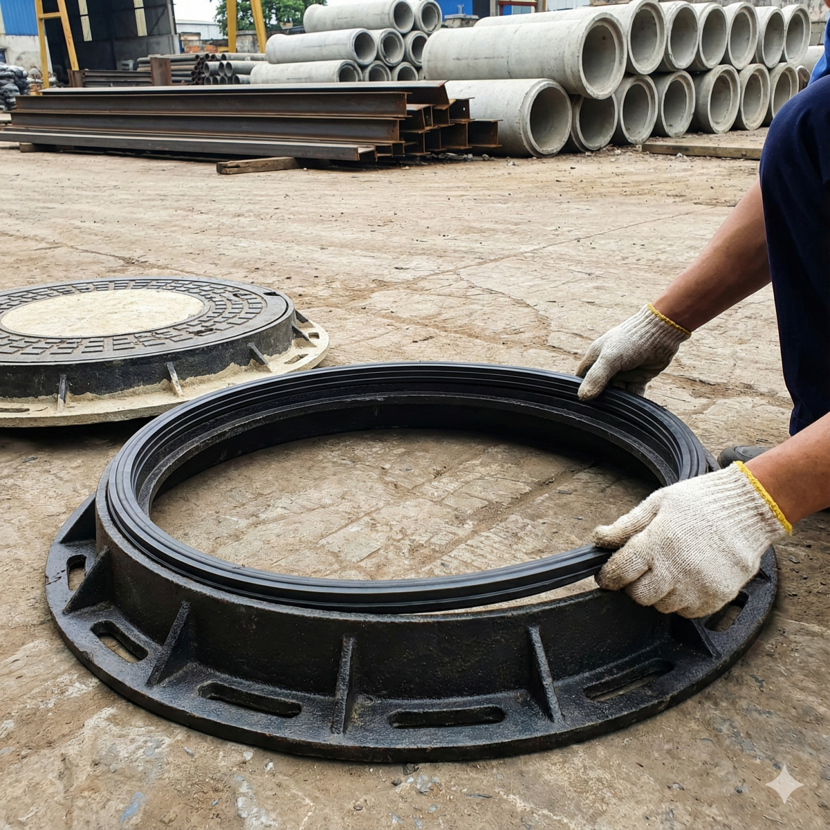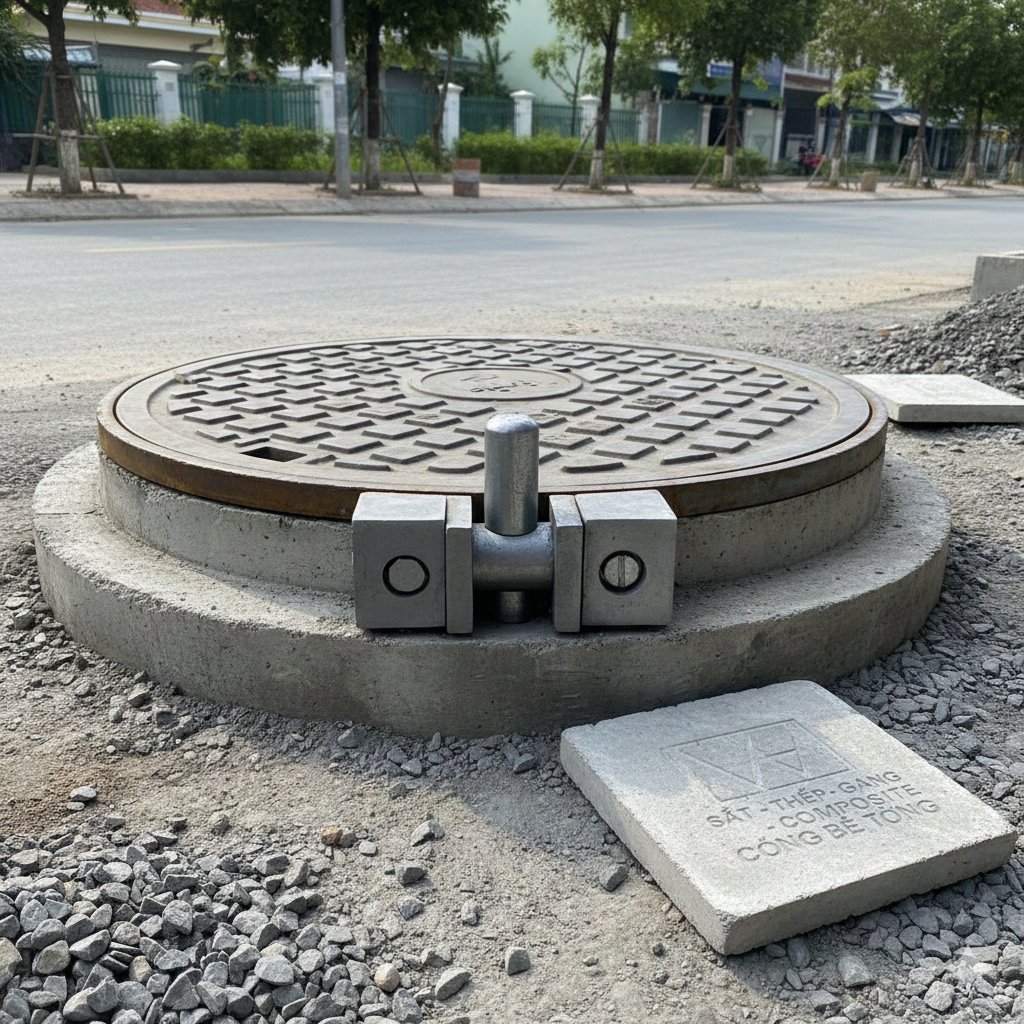 Đây là giải pháp phổ biến và hiệu quả, phù hợp cả nắp gang cầu – gang xám lẫn nắp composite.