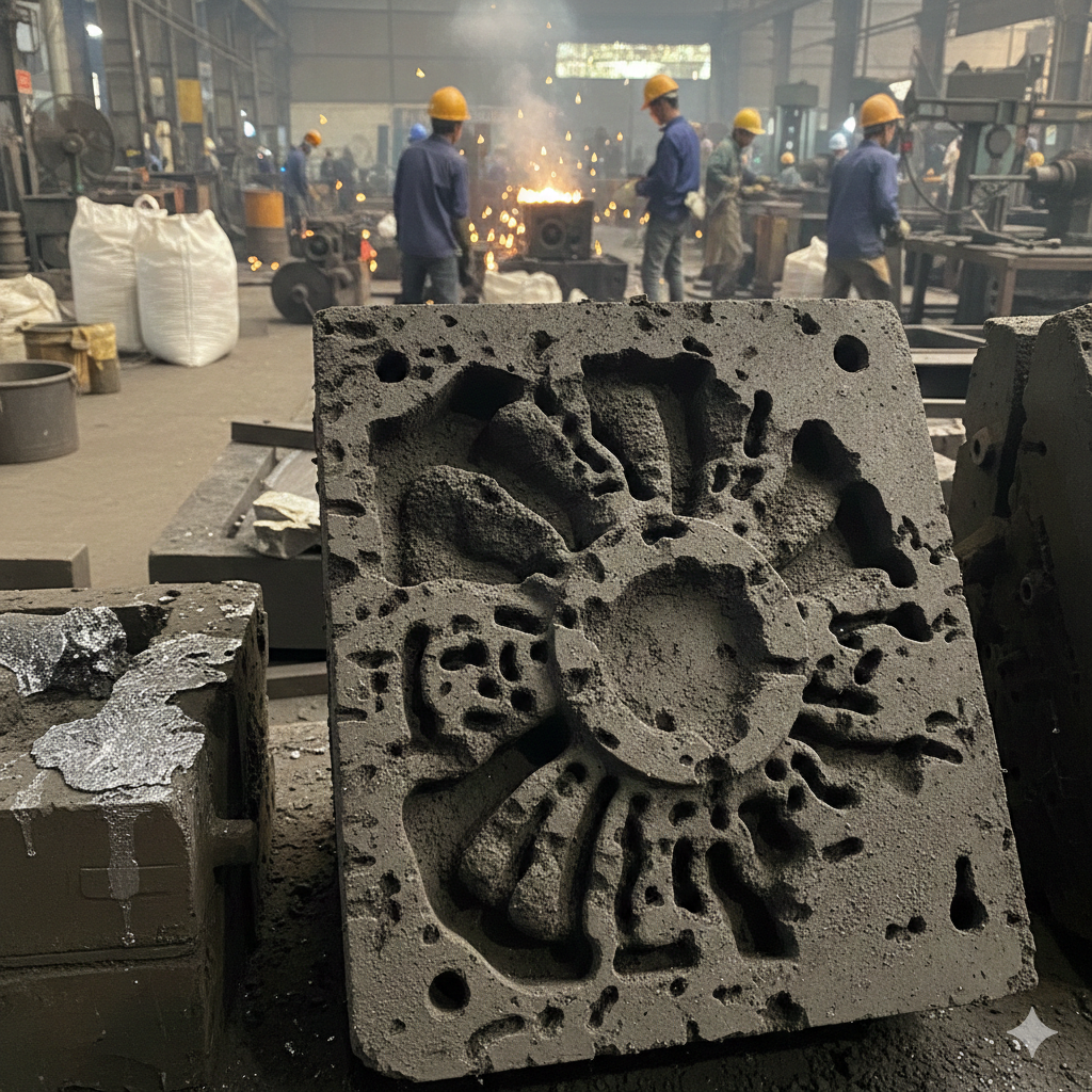 Trong tiêu chuẩn kiểm soát chất lượng đúc ISO 16400, rỗ cát được xếp vào nhóm “khuyết tật do vật liệu khuôn”, ảnh hưởng trực tiếp đến độ bền bề mặt sản phẩm.