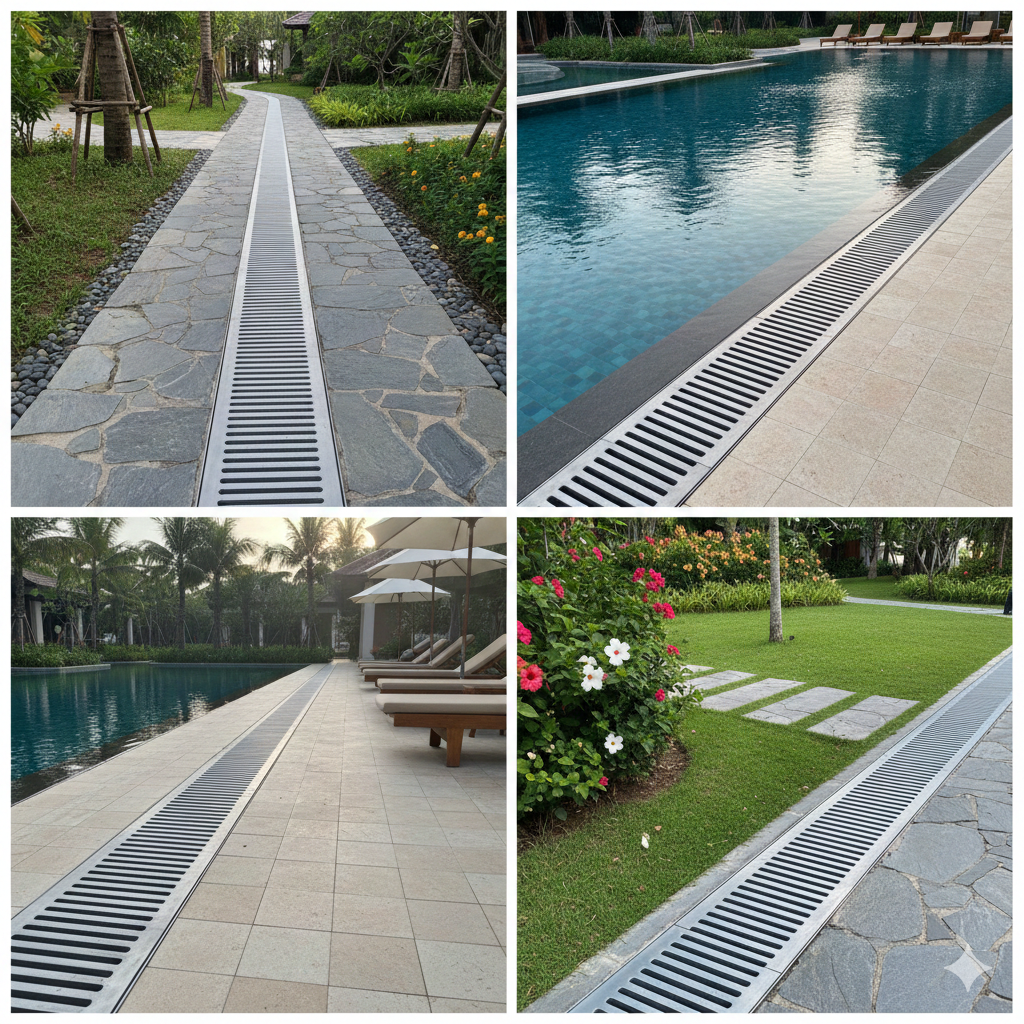 Tại các khu nhà ở cao cấp, yếu tố thẩm mỹ luôn được ưu tiên. Nắp hố ga inox 304 với bề mặt sáng, thiết kế tinh giản giúp hòa hợp với thảm cỏ, đá lát hoặc các đường dạo trong sân vườn. Sản phẩm vừa đảm bảo công năng thoát nước, vừa tạo cảm giác sạch sẽ và sang trọng.