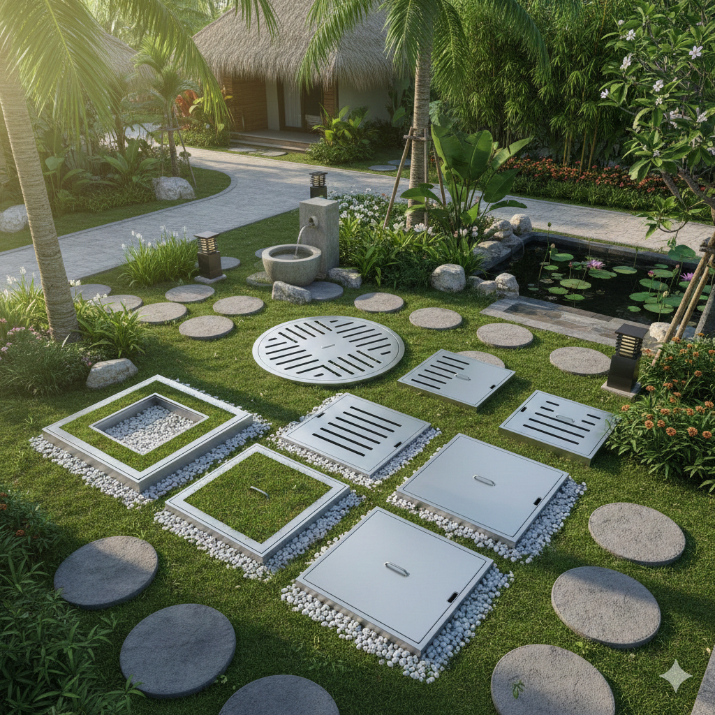 3. Các loại nắp hố ga Inox 304 phổ biến cho cảnh quan resort – sân vườn