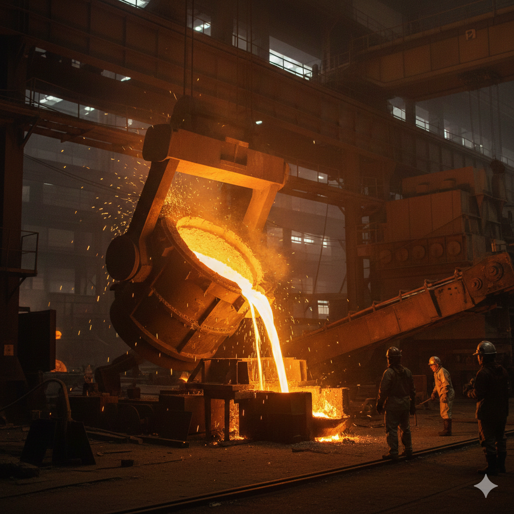 Kim loại được nấu chảy trong lò cảm ứng ở 1.400–1.500°C. Đây là giai đoạn cực kỳ quan trọng vì: