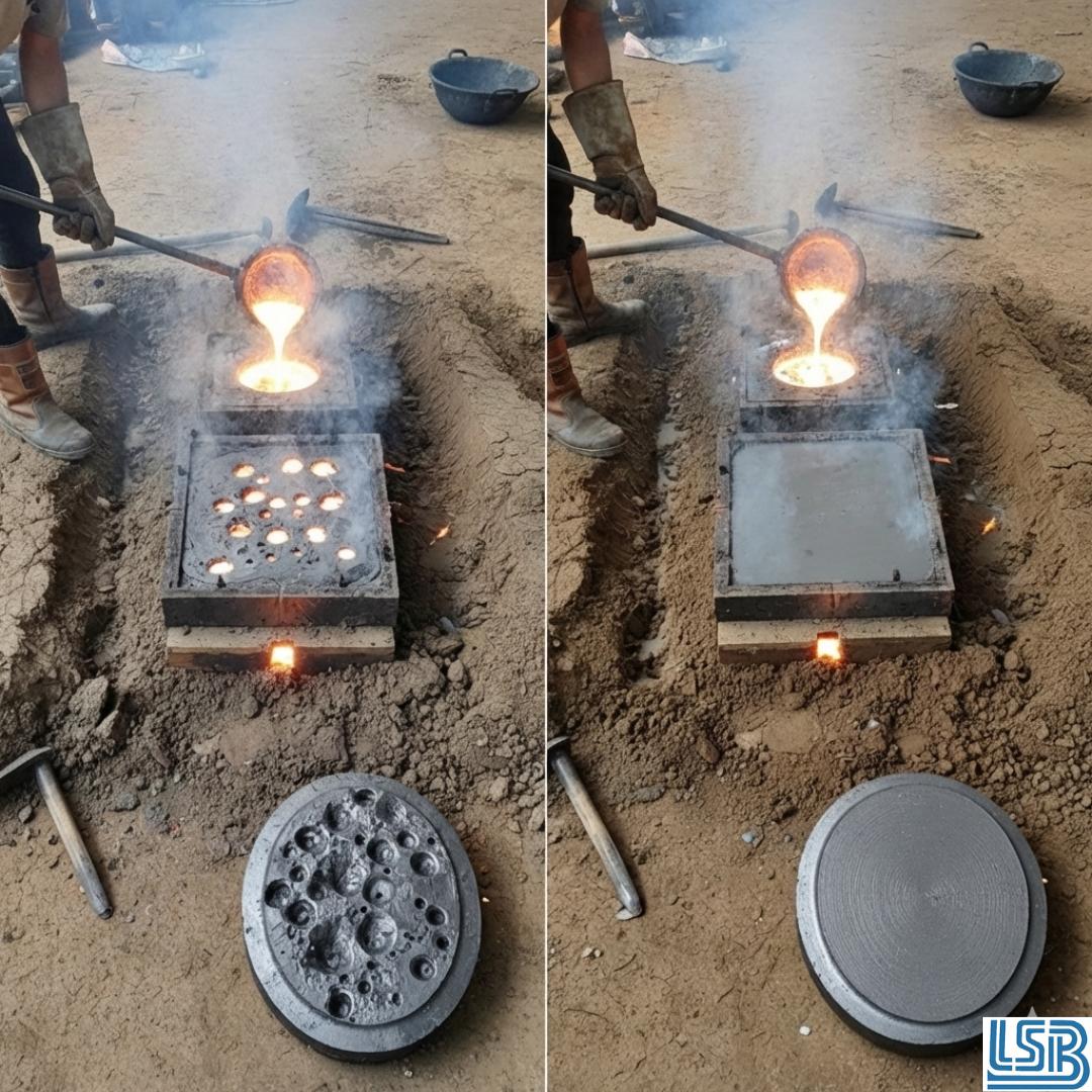 So sánh lỗi thường hay xảy ra khi không và đã cài nền đất trước khi đúc gang trên nền cát tươi