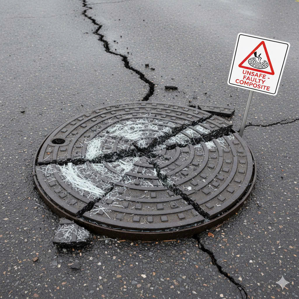 Một nắp hố ga composite có thể đạt hoặc vượt tiêu chuẩn tải trọng 40 tấn, nhưng nếu tỉ lệ vật liệu không đúng, nhất là khi tỉ lệ giữa nhựa nền và sợi thủy tinh bị sai lệch sẽ làm cho độ bền cơ học suy giảm nghiêm trọng, dễ dẫn đến nứt gãy, biến dạng hoặc lão hóa sớm trong môi trường khắc nghiệt.